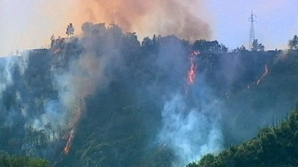 Four crew members are missing after the military planes hit each other and plunged into a hillside, causing a forest fire.
