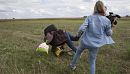 Hungarian camerawoman vilified for tripping a migrant, plans to sue
