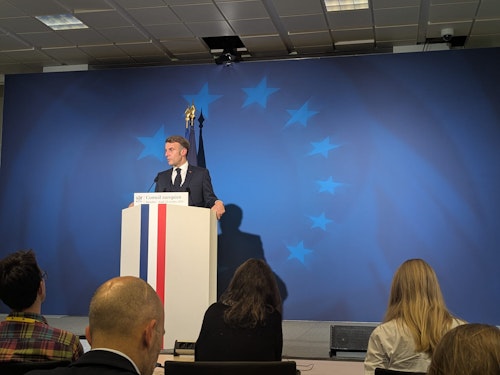 French President Emmanuel Macron told reporters in a press conference at the end of the summit that leaders have tasked the Commission to come up with "various technical arrangements" to continue providing long-term financial support for Ukraine.