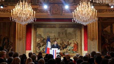 Macron made the announcement during a New Year's address to the press corps at the Elysee Palace in Paris.