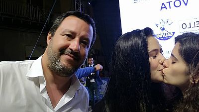 Kissing girls photobomb Salvini in protest over anti-LGBT conference