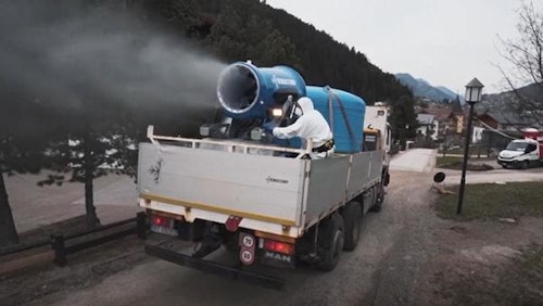 Italian towns are being disinfected with truck-mounted snow cannons