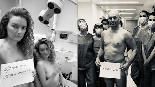 With the hashtag #dentistesapoil, meaning "naked dentists", they've gone au naturel to show how it feels to be asked to work without protection. More below...: