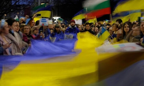 Thousands of people took to the streets of Bulgaria’s capital, Sofia, on Thursday to protest Russia’s invasion of Ukraine and to show solidarity with Ukrainians.