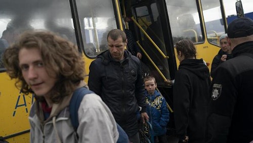 Watch Mairupol evacuees arrive by bus in the southeastern city here