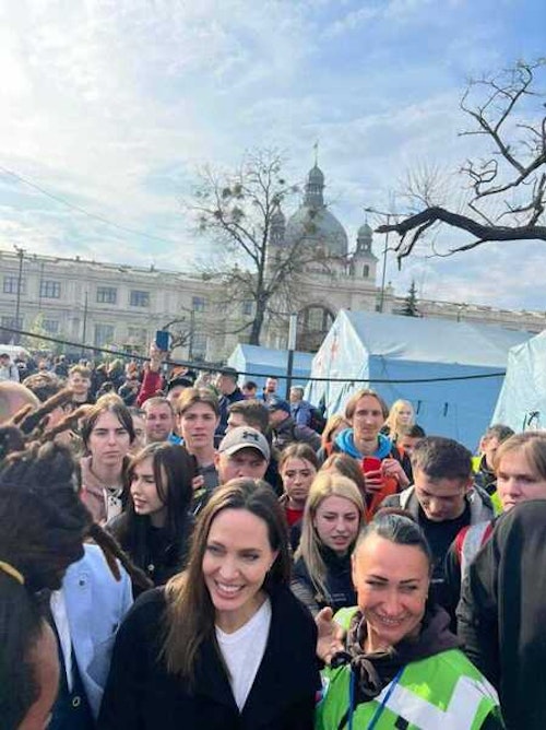 Multiple social media posts showed Angelina Jolie, a special envoy for the UN High Commissioner for Refugees, in Lviv, Ukraine on Saturday.