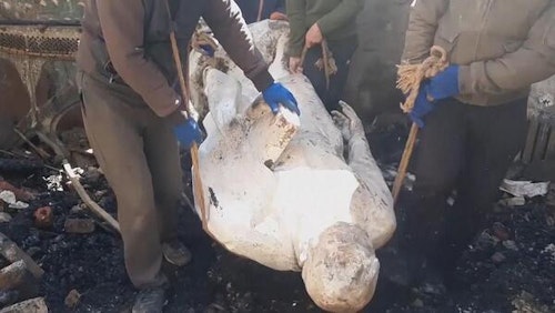 "The fire was extinguished after nearly four hours, then the rubble was cleared, and, unfortunately, the bodies of two people were found," Gaidai wrote on the Telegram messaging app.