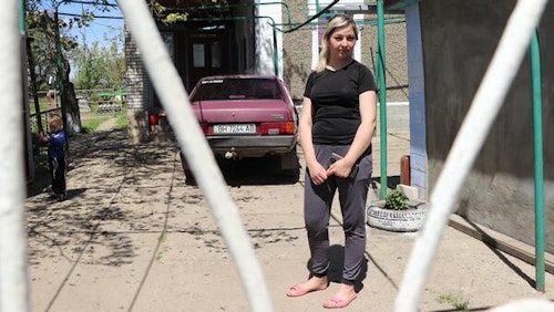Yana stands in her pink flip-flops about 15 kilometres from the Moldova border. She is scared.