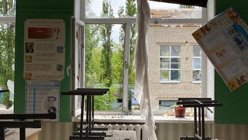 We're now heading to Mykolaiv and from there we're going to go further east. We are going to be given access today to a school that was occupied by Russian soldiers, because Ukrainian troops want to show us what these soldiers left behind.