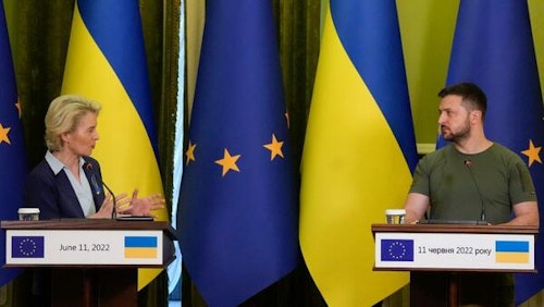 - European Commission President Ursula von der Leyen, visiting Kyiv, told President Zelenskyy that Brussels would finalise its assessment on Ukraine's eligibility for EU membership "by the end of next week".