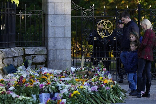 The hearse drove past piles of bouquets and other tributes as it led a seven-car cortege from Balmoral, where the Queen died Thursday, for a six-hour trip through Scottish towns to Holyroodhouse Palace in Edinburgh.
