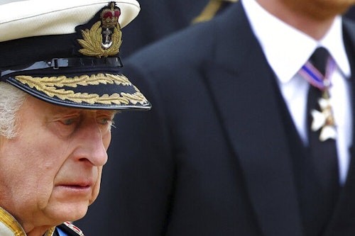 King Charles III and royal family members are following the coffin, preceded by some 200 members of Scottish and Irish Regiments, the Gurkhas Brigade and the RAF.