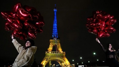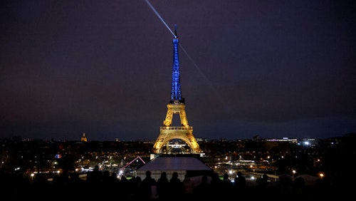 Officials in Paris lit up the Eiffel Tower in the colours of the Ukrainian flag in a show of solidarity on Thursday.