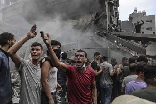 "For 75 years, the Israeli government has maintained a military occupation over Palestinians, operating an apartheid regime. Palestinian children are dragged from their beds in pre-dawn raids by Israeli soldiers and held without charge in Israeli military prisons. Palestinians' homes are torched by mobs of Israeli settlers, or destroyed by the Israeli army. Entire Palestinian villages are forced to flee, abandoning the homes and orchards and land that were in their family for generations."