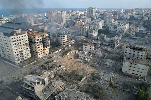 "Israeli forces are taking revenge on Palestinian armed factions by committing mass killing crimes against civilians," says Euro-Med Human Rights Monitor, posting a photo on social media of a destroyed neighbourhood.