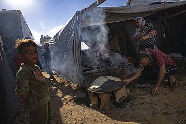A Palestinian boy stands among the destruction after Israeli strikes on Rafah, Gaza Strip
