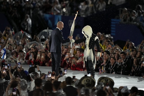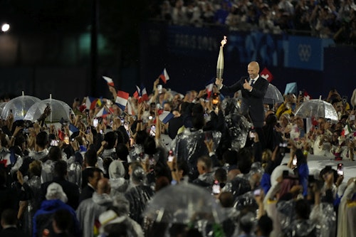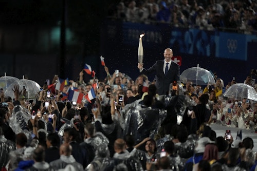 French football legend Zinedine Zidane kicked off the opening ceremony with the Olympic flame in his hands.