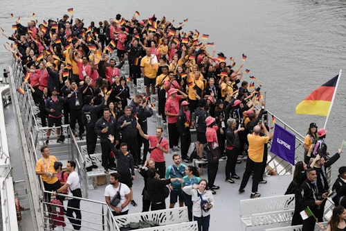 Over 300,000 people flocked to the banks of the Seine River, watching and cheering on dozens of boats carrying the 205 national delegations, starting with Greece and closing with hosts France.