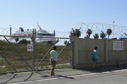 The cruise ship which transported evacuees from Israel is docked at the port of Larnaca, in Cyprus.