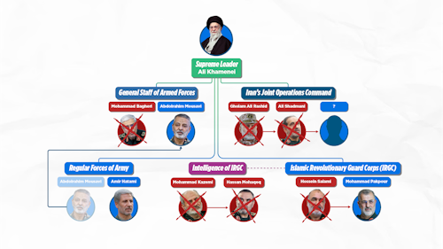 Our graphics team has put together this visual guide to show where the gaps currently are in Iran’s security command structure.