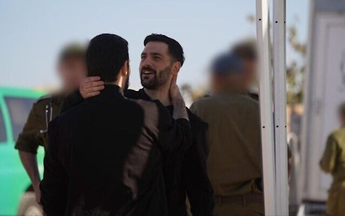 In another photo, Alon Ohel is seen meeting the Israeli army at the preliminary exchange point in the Gaza Strip after being released.