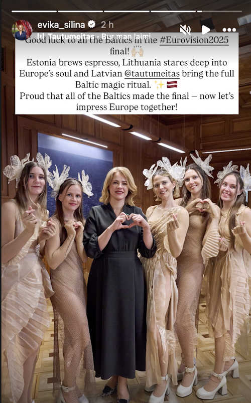 Latvian Prime Minister Evika Siliņa shows her support for Tautumeitas on Instagram, calling it a "Full Baltic magic ritual".