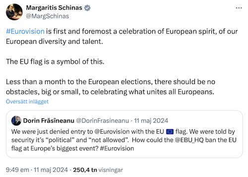 The EU flag ban from last year was met with a lot of criticism, including from former Vice-President of the European Commission Margaritis Schinas who posted this in reaction to the EBU rule: