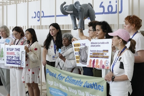 With peace also the theme of the day, there were a number of protests at the UN climate conference including a call for a ceasefire in Gaza. Protests are an unusual sight in the UAE and are only allowed inside the climate conference under very strict guidelines.