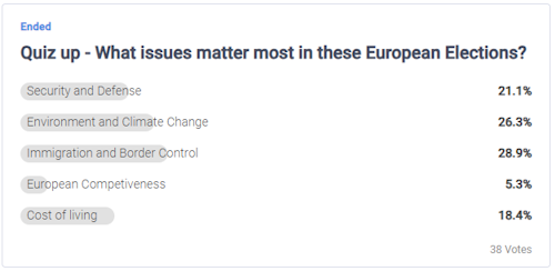 A poll released just ahead of the main day of EU elections by London-based public pollster Focaldata shows climate to be high among concerns of European voters going to the polls in six key countries.