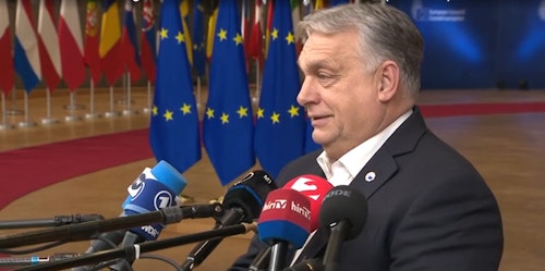 Hungarian Prime Minister Viktor Orban stopped on the red carpet to talk to journalist before leaving the European Council.