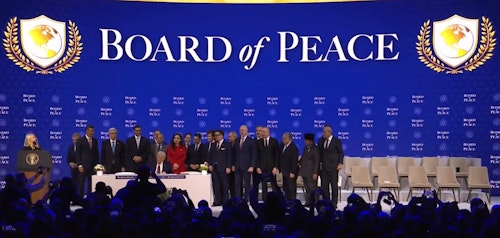 Donald Trump is addressing a ceremony launching the Board of Peace, with around 35 governments already signing up to join – among them Israel, Saudi Arabia, the United Arab Emirates, Bahrain, Jordan, Qatar and Egypt, and NATO members Turkiye and Hungary.