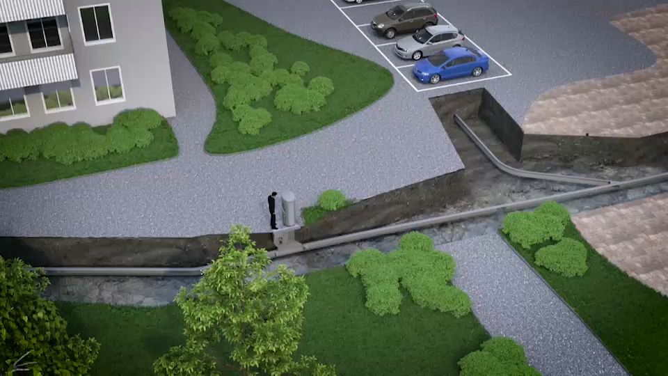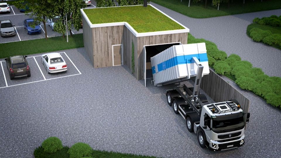 High-pressure tubes underground transport the waste to a single collection centre, meaning less space is needed, and fewer garbage trucks on the road.