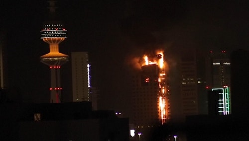 Kuwait City tower engulfed by fire as military says intercepting 'hostile missile and drone attacks'